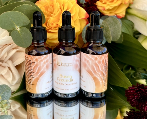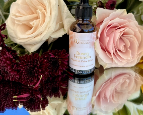 Doch BusenFreundin ist mehr als nur Pflege: Eine kurze, tägliche Brustmassage mit diesem Öl unterstützt die Durchblutung, fördert die Entgiftung und kann die Haut festigen. Gleichzeitig entsteht durch das bewusste Eincremen eine liebevolle Beziehung zu deinem eigenen – eine wertvolle Geste der Selbstfürsorge und ein Beitrag zur Brustgesundheit.