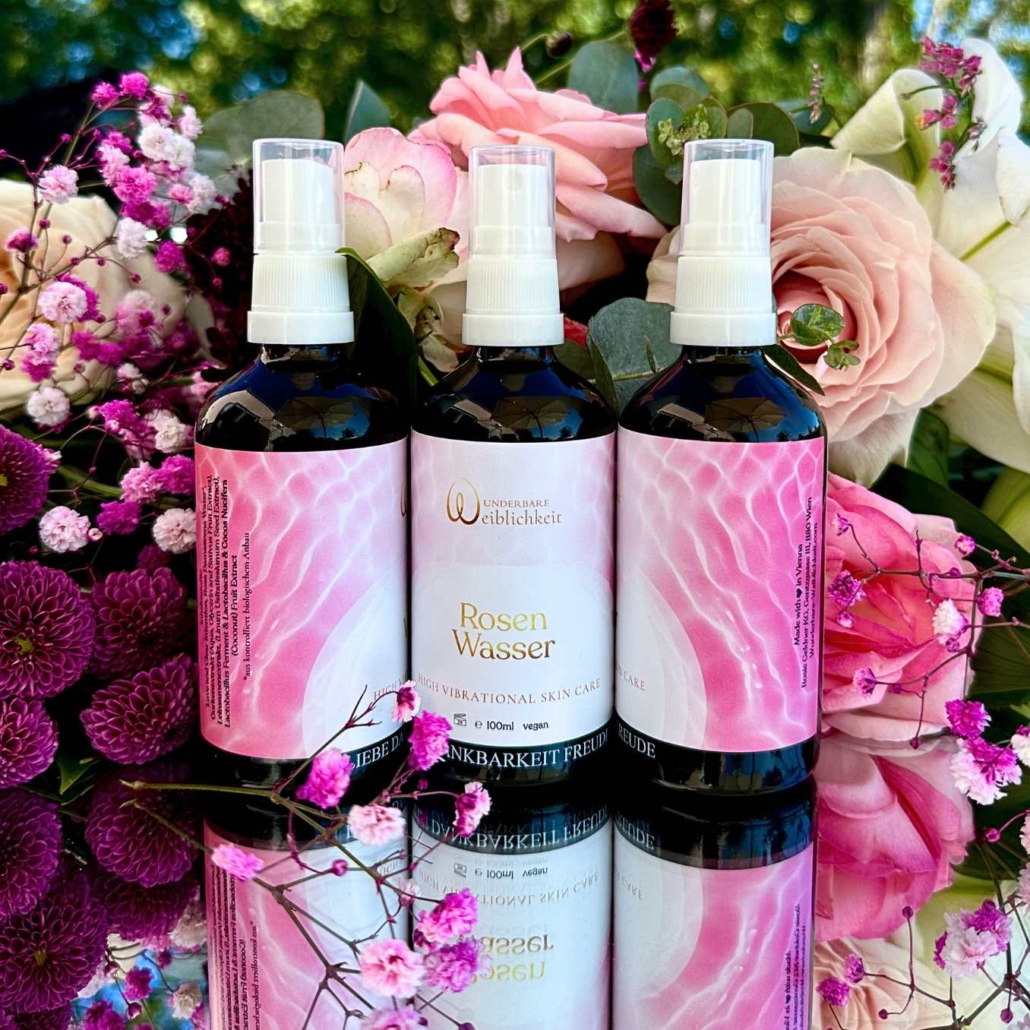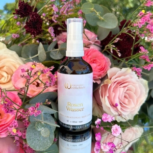 - Rosenwasser versorgt die Haut mit Feuchtigkeit in der Tiefe, wirkt regenerierend, entzündungshemmend und hat straffende Eigenschaften.